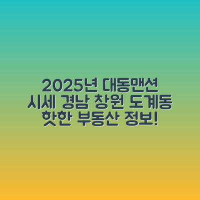 경상남도 창원시 의창구 도계동에 위치한 대동맨션 아파트는 최근 시장 변동으로 인해 투자 가치가 더욱 주목받고 있습니다. 이 아파트의 2025년 9월 시세를 통해 미래의 투자 결정을 내릴 수 있는 기회를 제공합니다.