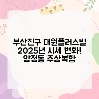 부산시 부산진구 양정동 대원플러스빌(주상복합) 아파트의 2025년 10월 시세를 이해하기 위해 현재 시장 동향을 비교 분석해보겠습니다.