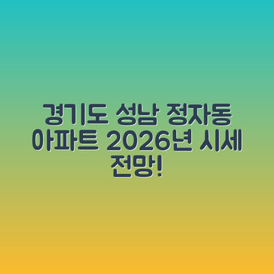 여러분, 부동산 투자에 대해 고민해본 적 있으신가요? 특히 경기도 성남시 분당구 정자동 정든동아1단지 아파트의 시세를 살펴보면 다양한 가능성이 열립니다. 이제 2026년 1월의 시세를 통해 어떤 전략을 세울 수 있을지 이야기를 나눠볼까요?