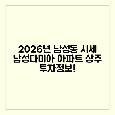 이렇듯, 남성다미아 아파트는 여러모로 매력적인 장소인데요, 혹시 여러분은 어떤 매력을 느끼고 있으신가요? 다가오는 2026년 1월 시세 변화도 기대해보면서, 앞으로 어떤 좋은 소식이 있을지 계속해서 지켜보실 것을 추천드립니다!